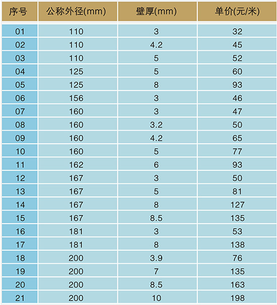以上為管材常用規(guī)格,特殊規(guī)格可按客戶要求訂制。
